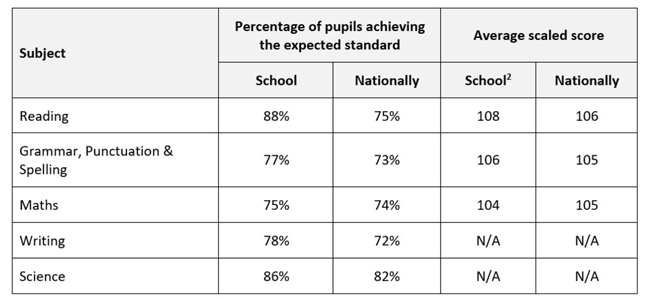 We are very proud of our outgoing year 6 pupils who performed exceptionally well in their KS2 SATs in the summer of 2025. Here are the results: